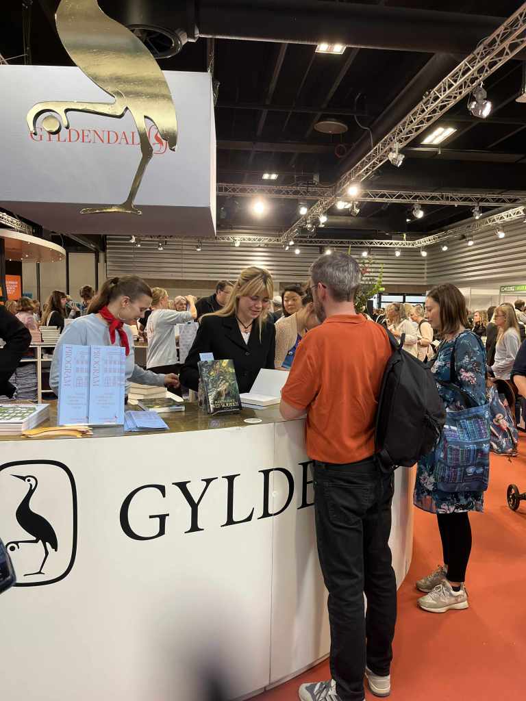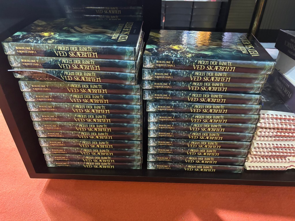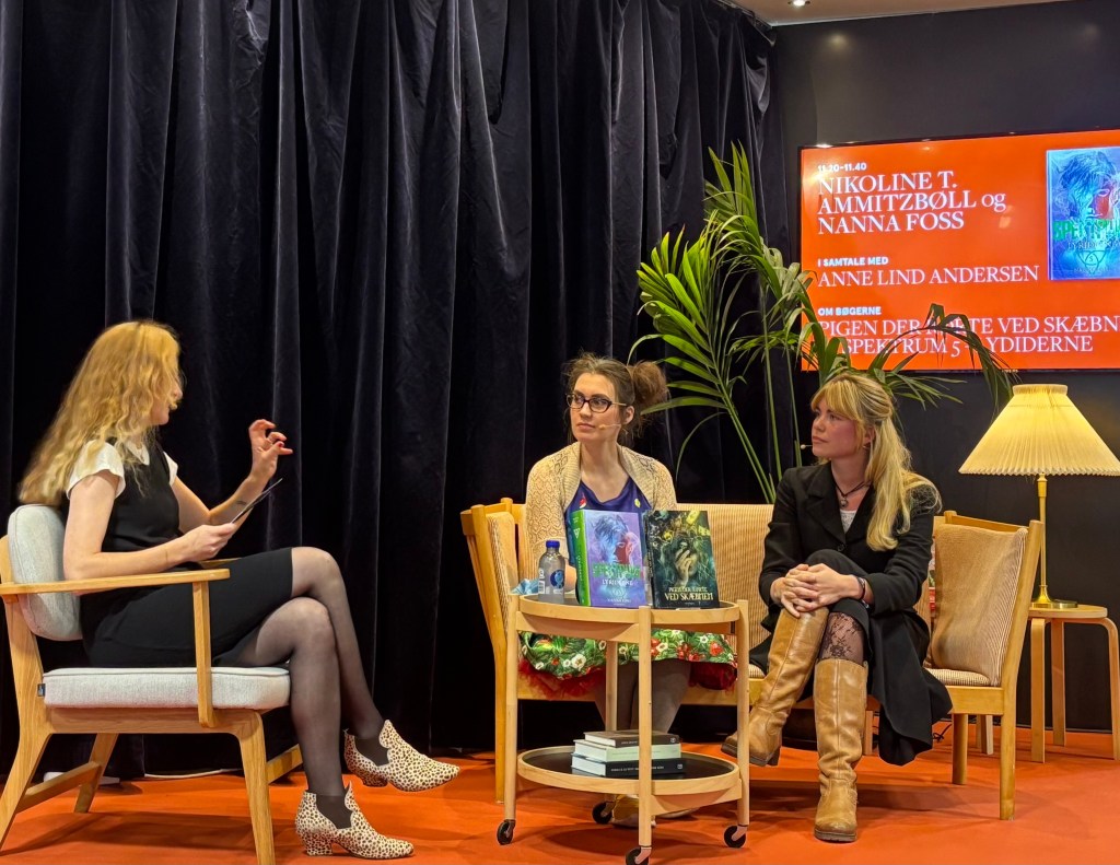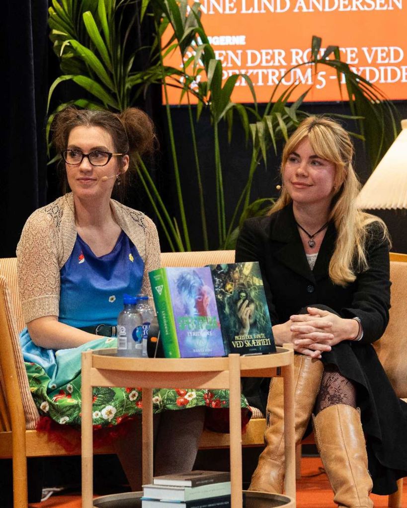 Jeg elsker at fortælle om min bog og min skrivelyst. Senest var det på en af Gyldendals Tranescener på Bogforum 2025 i selskab med Nanna Foss, hvor vi fortalte om både vores bøger, men også, hvad vi mener, at fantasygenren kan som er unikt.
